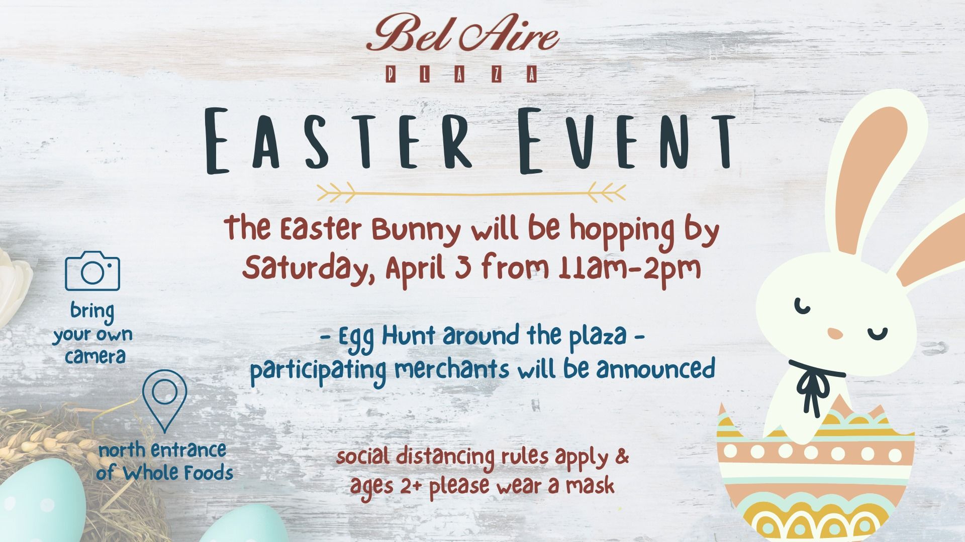 Bel Aire Plaza is doing another Bunny Hop Easter event with photos at the north entrance of Whole Foods.