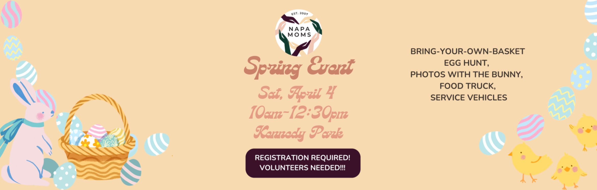 Here’s the event link with more details: https://www.napa.kids/upcoming-events/napa-moms-spring-celebration-age-0-6