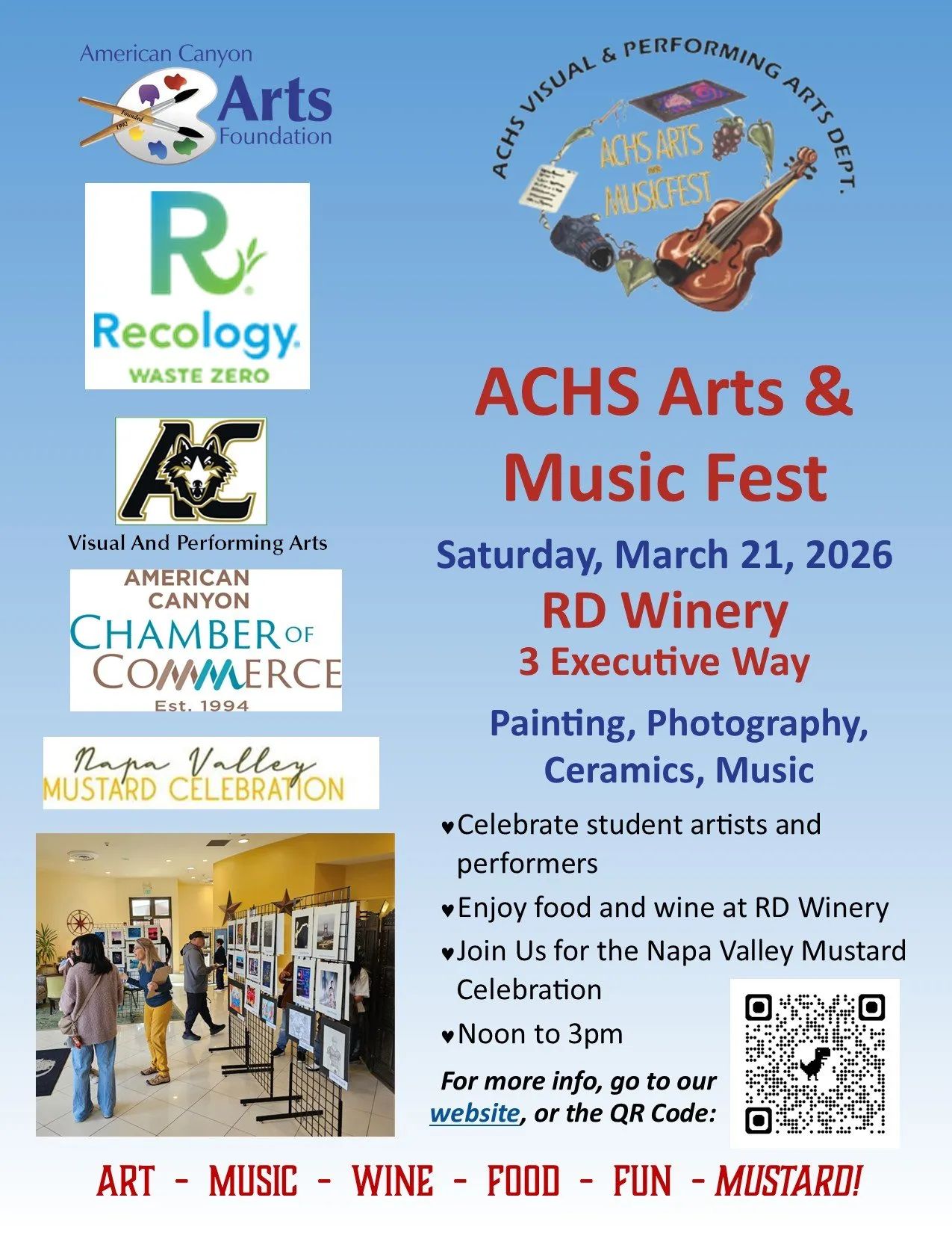 The American Canyon High School Arts & Music Fest is celebrating their student talent this Saturday, March 21 starting at noon at RD Winery.