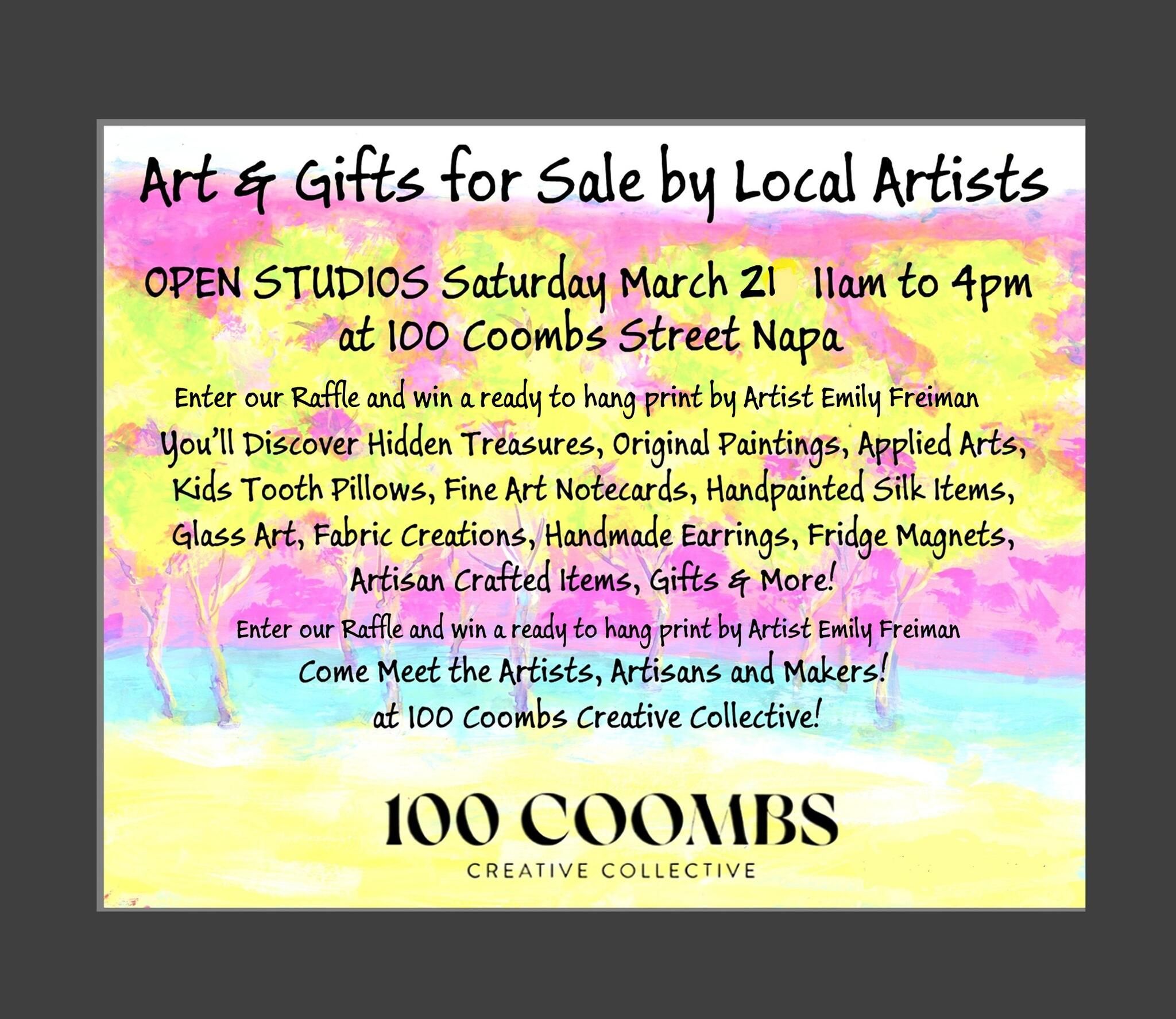 This one looks like a nice, easy Saturday stop if you want to browse around and see what local artists, makers, and creatives are up to. Sounds like a pretty wide mix too - paintings, glass art, silk items, earrings, notecards, gifts, and more.